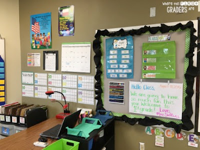My “Write On!” wall is also new this year! I got the idea from Easy Teaching Tools. She provides a great tutorial on how she made her wall. It was super easy and the best part is that you can simply take the folder off of the wall at the end of the year and the students' writing portfolios are already made!! TEACHER WIN!