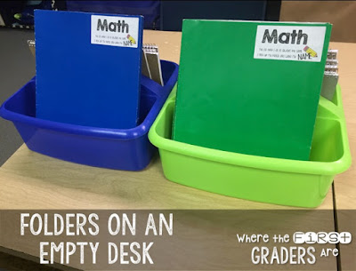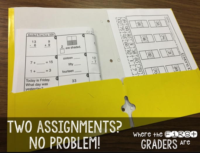 If I had two paper assignments that day (a journal and an excel review sheet), I would put one on each side of the folder. I always made sure that students knew which assignment to start with. They also knew that when one assignment was turned in, they needed to retrieve the second assignment. I love this method because it kept the second assignment “out of sight, out of mind” until the student was ready for it.