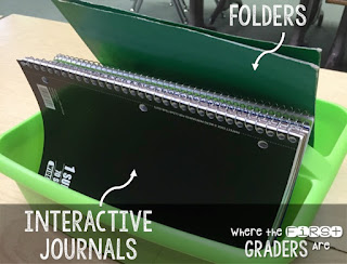 What's that behind the folders you asked?? Interactive Journals!! I just hate, hate, hate when journals get shoved in a student's desk and all of their hard work gets crumpled and torn and messed up. Our journals stay safe and sound and pretty in our caddy.