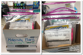When I'm done I store the week's worth of a resources in an XL ziplock bag. If you are an elementary teacher like me and need your sub to change out guided reading or guided math stations, you may need more than one bag.