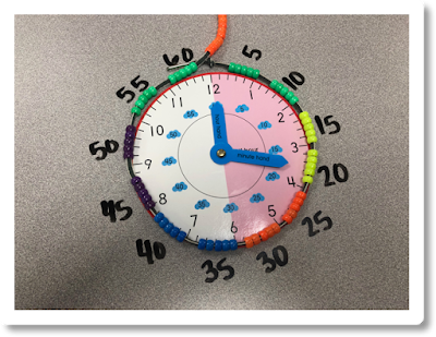 We usually only do this activity once during whole group when we are introducing time. We may do it again during an intervention group, but the purpose of the activity is simply to show students that a clock is also a number line that goes from 0 to 60 and starts over. If your student have already been skip counting by 5's on their beaded number lines then this activity will help them to make that connection.