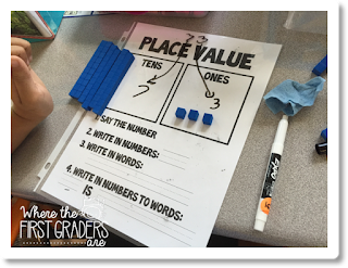 -Once students have mastered place value to 20 with cubes, I introduce base ten blocks. We practice building numbers EVERY DAY during our math warm ups, then I continue to build with my struggling students during their guided math small group.