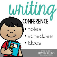 When giving feedback to a student during a writing conference, I like to use the 2 to 1 method. I have the student share their writing with me, then I point out two things I really liked during their writing (I usually try to find a skill we've recently had a mini-lesson on) and then I share ONE thing that I want them to try or keep in mind for next time. Let's be honest, there are about ten things on every writing that are going to drive you insane. But remember that your writers are only 6 or 7 years old. You can't expect them to retain ten lessons or skills in one day. Find one thing that you think will benefit them the most and work on that ONE thing.